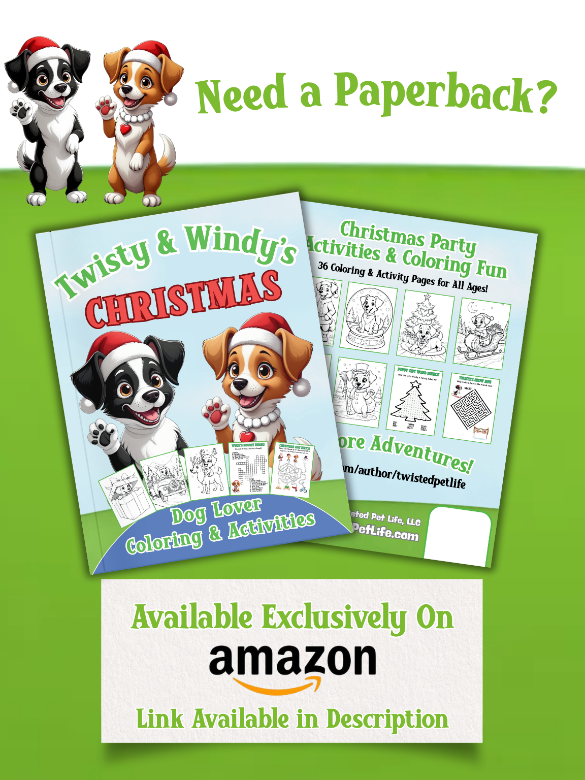 Celebrate the holiday magic of wagging tails, winter wonder, and holiday cheer with Twisty and Windy, two cheerful-go-lucky dogs who bring every page to life! Twisty and Windy's Christmas Coloring and Activity Book is a joyful experience designed for dog lovers, families, and anyone who celebrates the holidays more with paws and smiles.