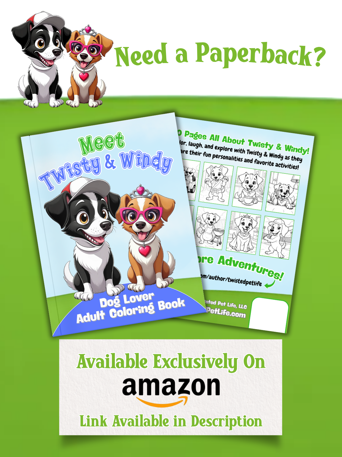 Meet your new favorite furry friends in Meet Twisty & Windy's Adult Dog Coloring Book!