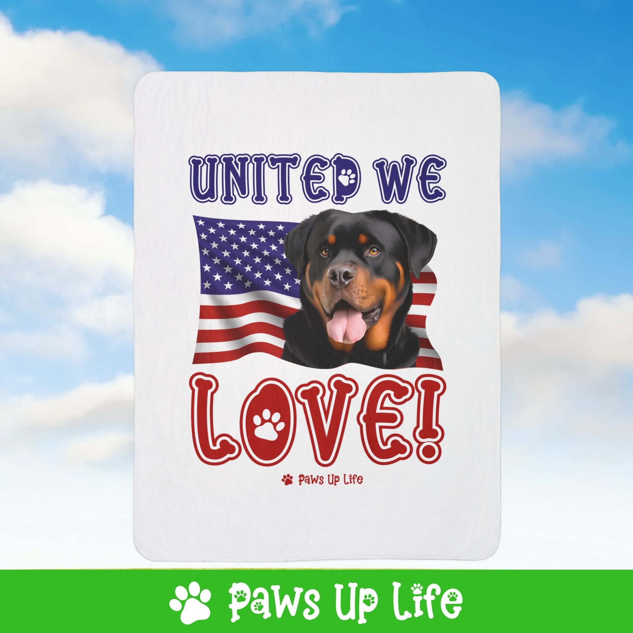 Snuggle into softness with our custom-print Rottweiler Dog "United We Love" fleece blanket that’s as warm as a big dog snuggle and as vibrant as your wildest dreams. Whether you’re binge-watching your favorite show or catching some Z's, this blanket is perfect for any dog lover.